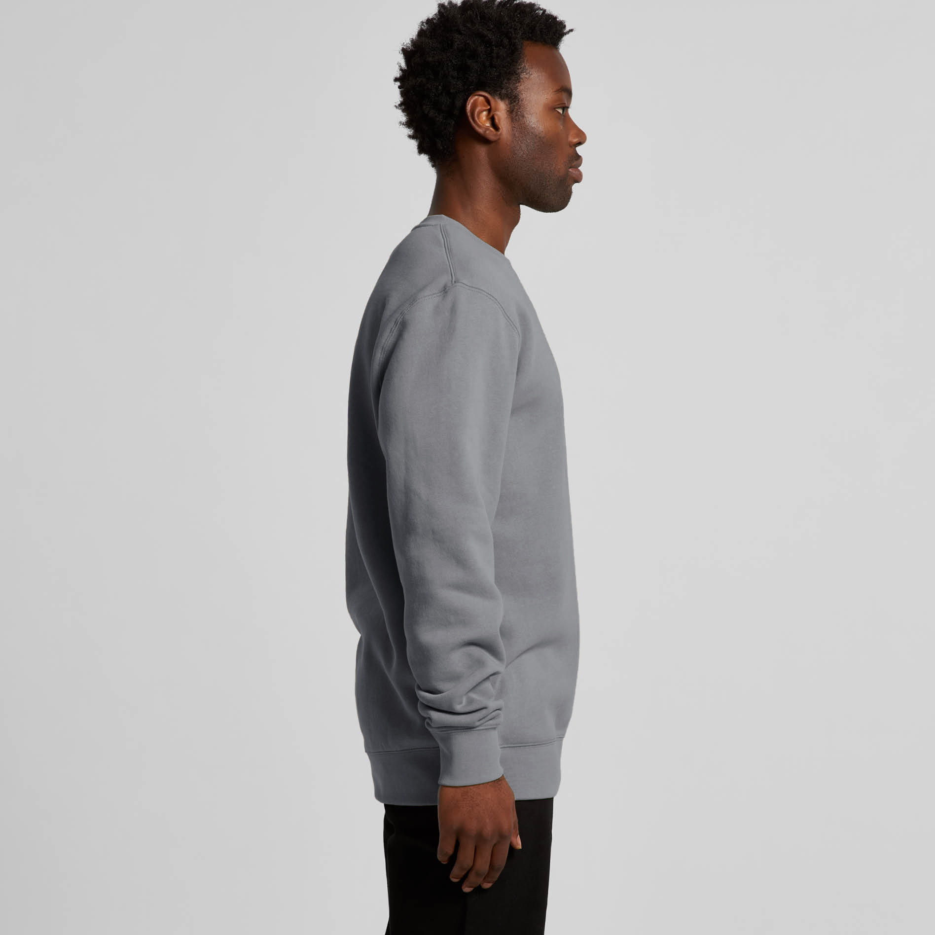 Construction: Pullover crew, drop shoulder, inset sleeves, neck, hem and sleeve 2x2 ribbing, french terry, preshrunk to minimise shrinkage